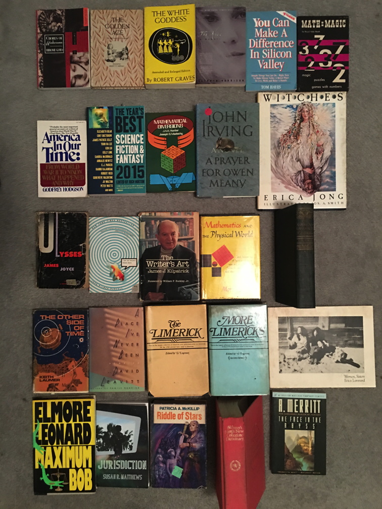 Here's today's list. A line through a book means it's been claimed.
