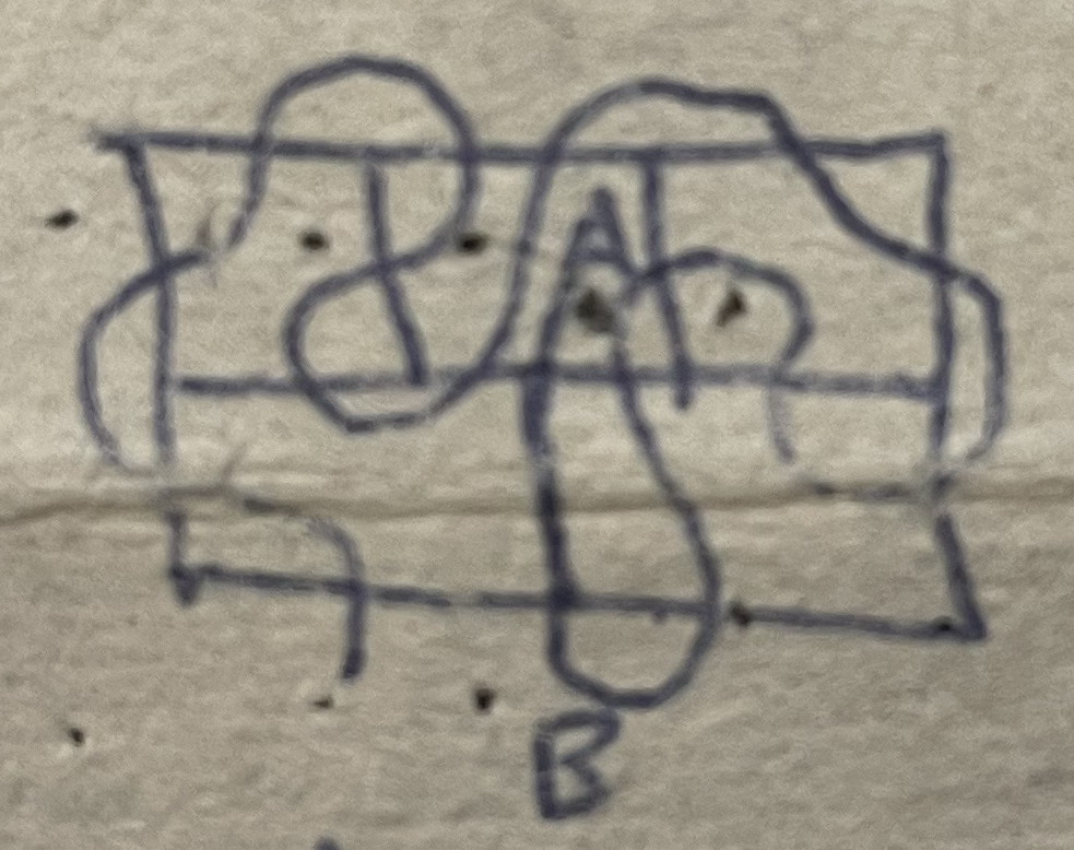 , with path from B to A going “across” a line in a different sense/way than the other crossings…