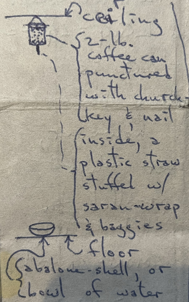 Handwritten letter on multiple pages of thin but rough unlined 6½" x 9½" paper, sent to my uncle Dobe while he was in prison. About ⅔ of the letter is from Peter; the rest from Marcy. The Peter section includes a couple of hand-drawn math/geometry things, including a supposed method for trisecting any angle with compass and straight edge, so I’m including more images than usual in this letter.